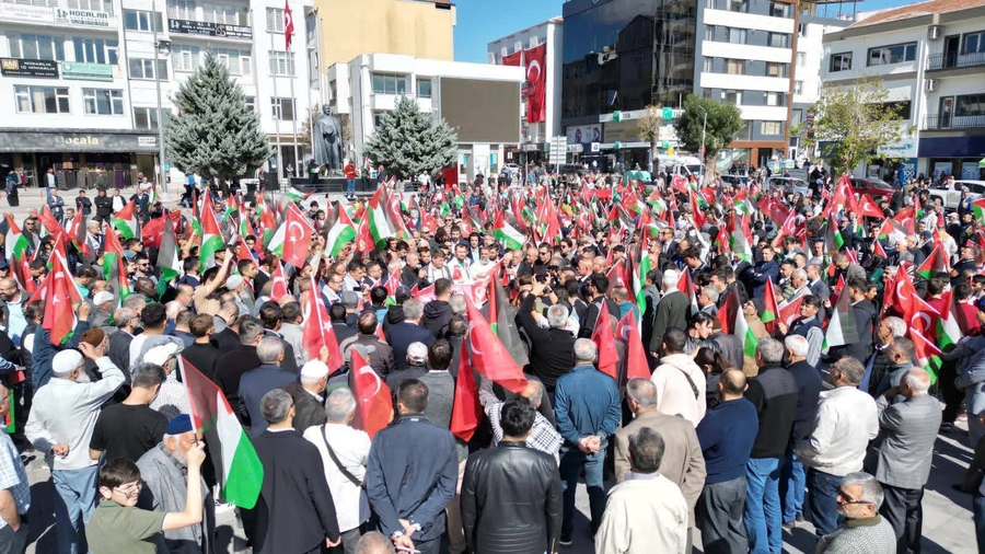 Aksaraylılar, etkinlik boyunca “Kahrolsun İsrail”, “Filistin’e Özgürlük” ve “Nehirden Denize Özgür Filistin” sloganlarıyla Gazze’ye desteklerini güçlü bir şekilde dile getirdi.