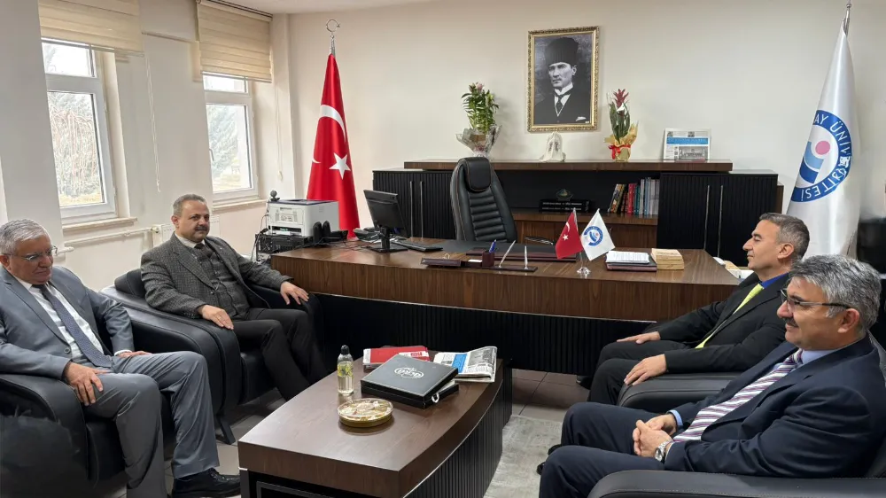 Aksaray Üniversitesi (ASÜ) Rektörü Prof. Dr. Alpay Arıbaş, İletişim Fakültesi Dekanlığı görevine atanan Prof. Dr. Veysel Çakmak’ı makamında ziyaret ederek, yeni görevinde başarılar diledi. Ziyarete ASÜ Rektör Yardımcıları Prof. Dr. Ömer Köse ve Prof. Dr. Erşan Sever, Genel Sekreteri Ahmet Bülbül ile İletişim Fakültesi Dekan Yardımcısı Doç. Dr. Zühal Fidan Baritci ve bölüm başkanları katıldı. Üniversitenin akademik ve bilimsel gelişimini her alanda ileriye taşımayı hedeflediklerini kaydeden ASÜ Rektörü Prof. Dr. Alpay Arıbaş, Aksaray Üniversitesi’nin güçlü akademik yapısıyla bölgesel ve ulusal ölçekte daha etkin bir konuma gelmesi için çalışmaların sürdüğünü dile getirdi. Prof. Dr. Arıbaş, "Akademik kadromuzdan kendi alanlarında nitelikli çalışmalar ortaya koymalarını, öğrencilerimizi ise çağın gereklerine uygun, donanımlı bireyler olarak yetiştirmelerini bekliyoruz” dedi. İletişim alanında güçlü, yenilikçi ve üretken bir akademik yapı oluşturmayı hedeflediklerini vurgulayan ASÜ İletişim Fakültesi Dekanı Prof. Dr. Veysel Çakmak da nazik ziyaretlerinden dolayı Rektör Prof. Dr. Alpay Arıbaş’a ve beraberindeki heyete teşekkür etti. Prof. Dr. Çakmak, fakülte olarak akademik başarıyı ve uygulama temelli eğitimi ön planda tutan çalışmalar gerçekleştireceklerini ifade etti.